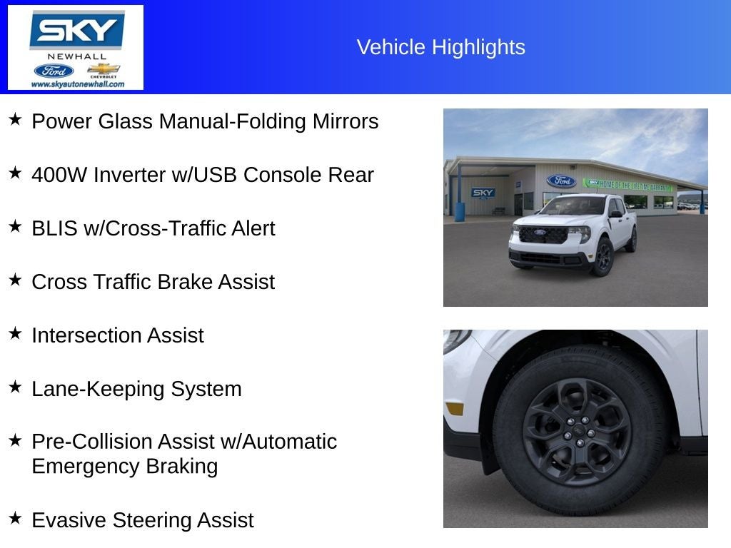 Meet the 2025 Ford Maverick XLT a versatile truck designed for real life. Its the perfect balance of capability and everyday practicality, giving you the confidence of a pickup without the bulk of a full-size truck. Its smart design offers comfortable seating for five and a smooth, composed ride whether you're navigating tight city streets or heading out on a weekend getaway.