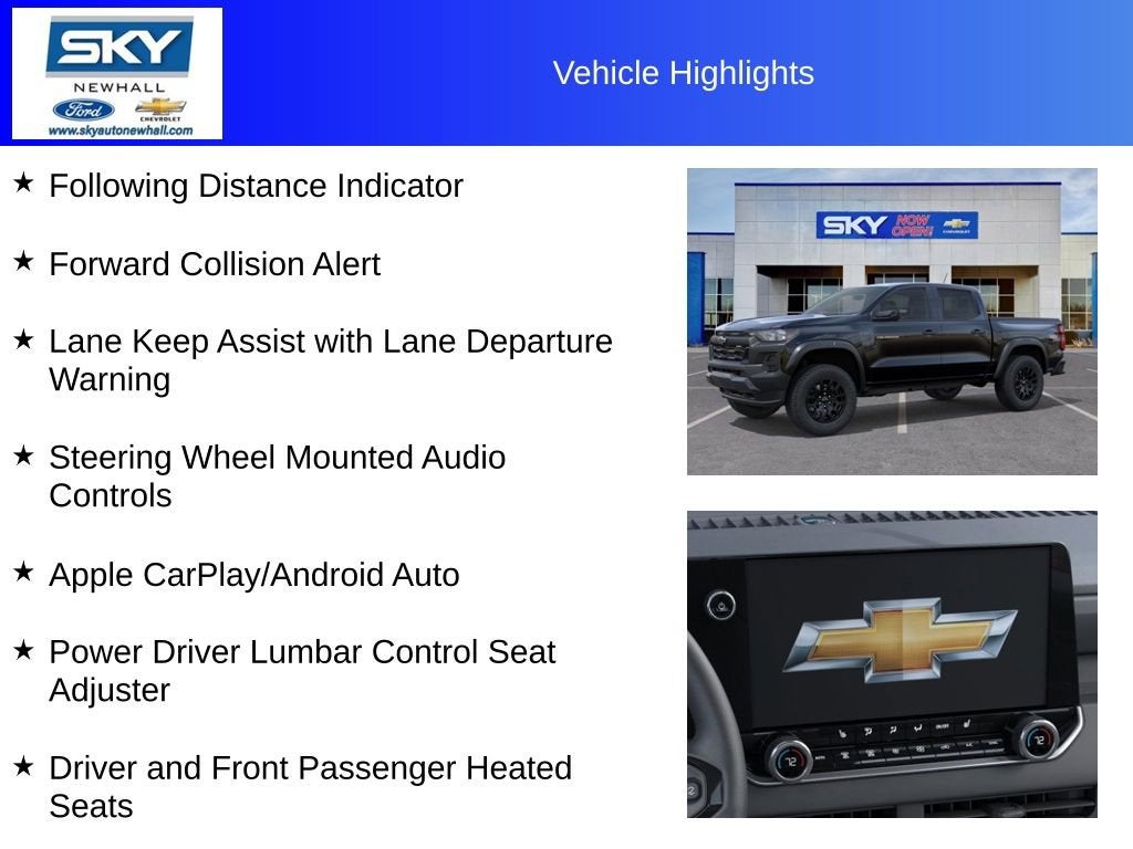Trail Boss 4WD, 4-Spoke Wrapped Steering Wheel, 8-Way Power Driver Seat Adjuster, Apple CarPlay/Android Auto, Automatic Emergency Braking, Black Alloy Wheels, Brake assist, Chevy Safety Assist, Driver and Front Passenger Heated Seats, Evotex Seat Trim, Following Distance Indicator, Forward Collision Alert, Front Pedestrian and Bicyclist Braking, Heated door mirrors, Heated Steering Wheel, IntelliBeam Automatic High Beam on/Off, Lane Keep Assist with Lane Departure Warning, Power Driver Lumbar Control Seat Adjuster, Preferred Equipment Group 0TR, Rear window defroster, Remote keyless entry, Remote Vehicle Starter System, Split folding rear seat, Steering wheel audio controls, Steering Wheel Mounted Audio Controls, Trail Boss Convenience Package II, Wireless Phone Charging. Price includes: $2000 - Chevrolet Conquest Program. Exp. 03/02/2026 $500 - Chevrolet Consumer Cash Program. Exp. 03/02/2026