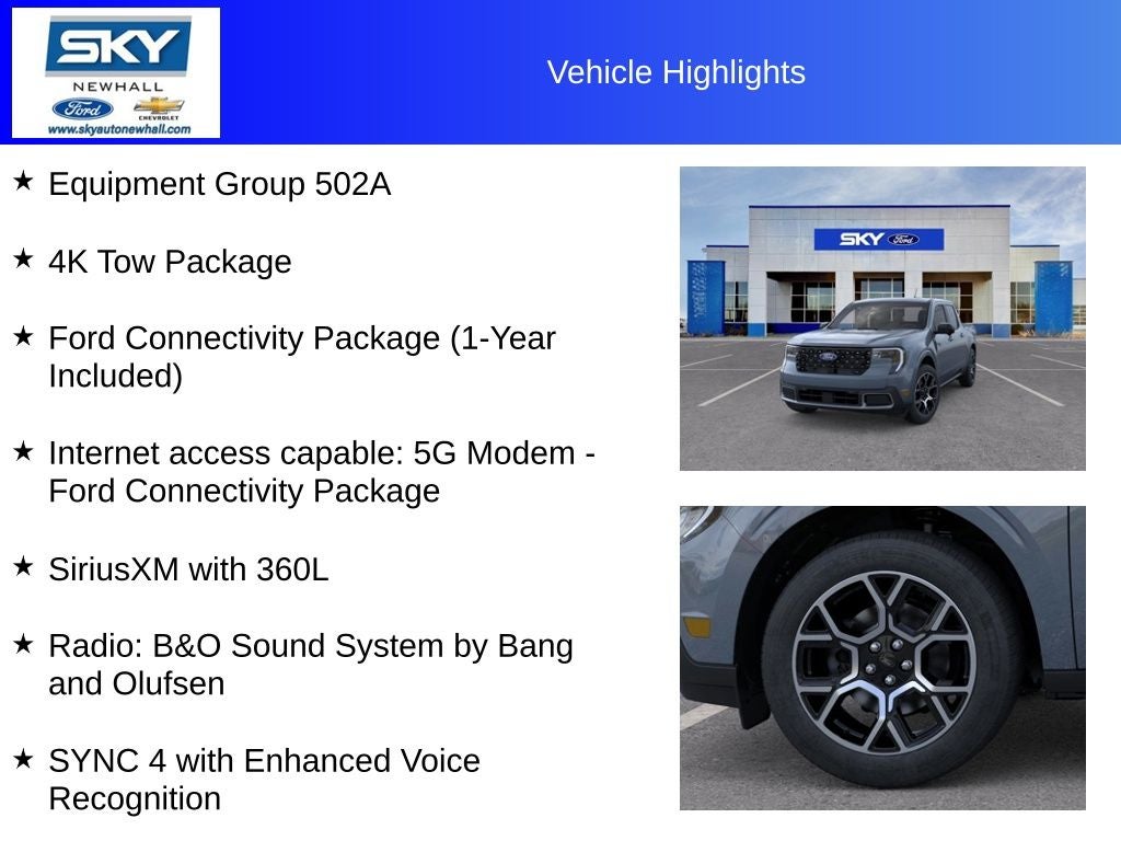 Lariat 4K Tow Package, ActiveX Trimmed Heated Front Bucket Seats, Apple CarPlay/Android Auto, Black Alloy Wheels, Brake assist, Equipment Group 502A, Exterior Parking Camera Rear, Ford Connectivity Package (1-Year Included), Heated door mirrors, Heated front seats, Heated steering wheel, Internet access capable: 5G Modem - Ford Connectivity Package, Radio: B&O Sound System by Bang and Olufsen, Remote keyless entry, SiriusXM with 360L, Steering wheel audio controls, SYNC 4 with Enhanced Voice Recognition, Trailer Brake Controller, Trailer Hitch (class III) 2 Receiver, Upgraded Cooling Fan, Wheels: 19 Machined Aluminum Painted.