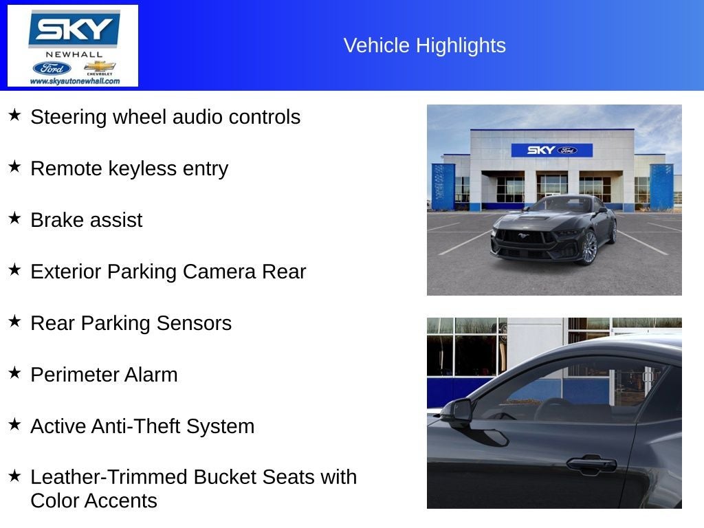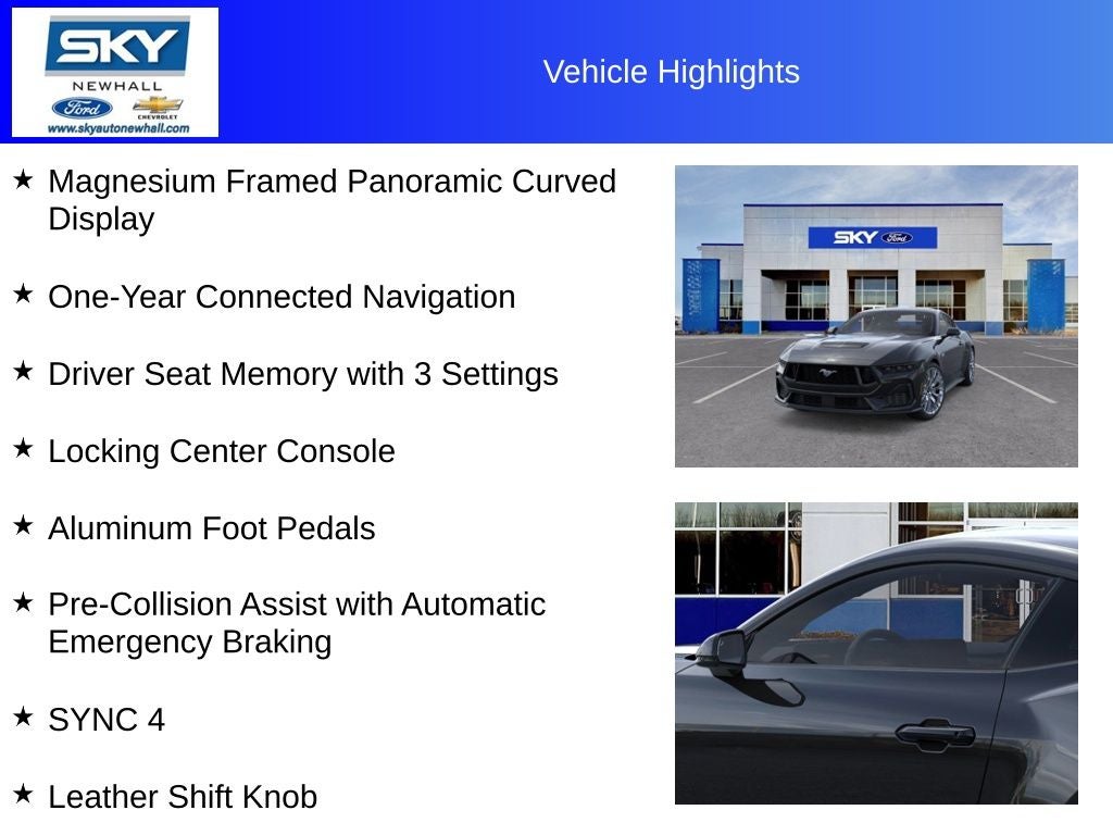 GT Premium Active Anti-Theft System, Aluminum Foot Pedals, AM/FM Stereo, Anti-Theft Package, Black Alloy Wheels, Brake assist, Driver Seat Memory with 3 Settings, Equipment Group 401A High Package, Exterior Parking Camera Rear, Ford Co-Pilot360 Assist+, Ford Connectivity Package (one-Time Purchase - 7 Years), HD Radio, Leather Shift Knob, Leather steering wheel, Leather-Trimmed Bucket Seats with Color Accents, Locking Center Console, Magnesium Framed Panoramic Curved Display, One-Year Connected Navigation, Perimeter Alarm, Pre-Collision Assist with Automatic Emergency Braking, Rear Parking Sensors, Rear window defroster, Remote keyless entry, SiriusXM with 360L, Split folding rear seat, Steering wheel audio controls, SYNC 4, Wheel Locking Kit, Wheels: 19 x 8.5 Shadow Silver-Painted Aluminum. Price includes: $1000 - Retail Customer Cash. Exp. 03/31/2026