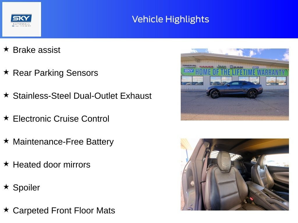 The 2010 Chevrolet Camaro SS delivers an exciting blend of modern performance and classic American muscle car attitude. With its bold, aggressive styling and unmistakable road presence, this Camaro captures attention everywhere it goes. Under the hood, it offers thrilling power that makes every drive feel energetic and engaging, whether you're cruising through town or opening it up on the highway.