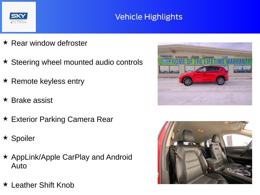 Alloy wheels, AppLink/Apple CarPlay and Android Auto, Brake assist, Exterior Parking Camera Rear, Heated Front Bucket Seats, Heated front seats, Leather Shift Knob, Leather steering wheel, Leatherette Seat Trim, Rear window defroster, Remote keyless entry, Split folding rear seat, Spoiler, Steering wheel mounted audio controls. Soul Red Crystal Metallic 2024 Mazda CX-5 2.5 S Select Package AWD 6-Speed Automatic 2.5L I4 DOHC 16V LEV3 SULEV30 187hp