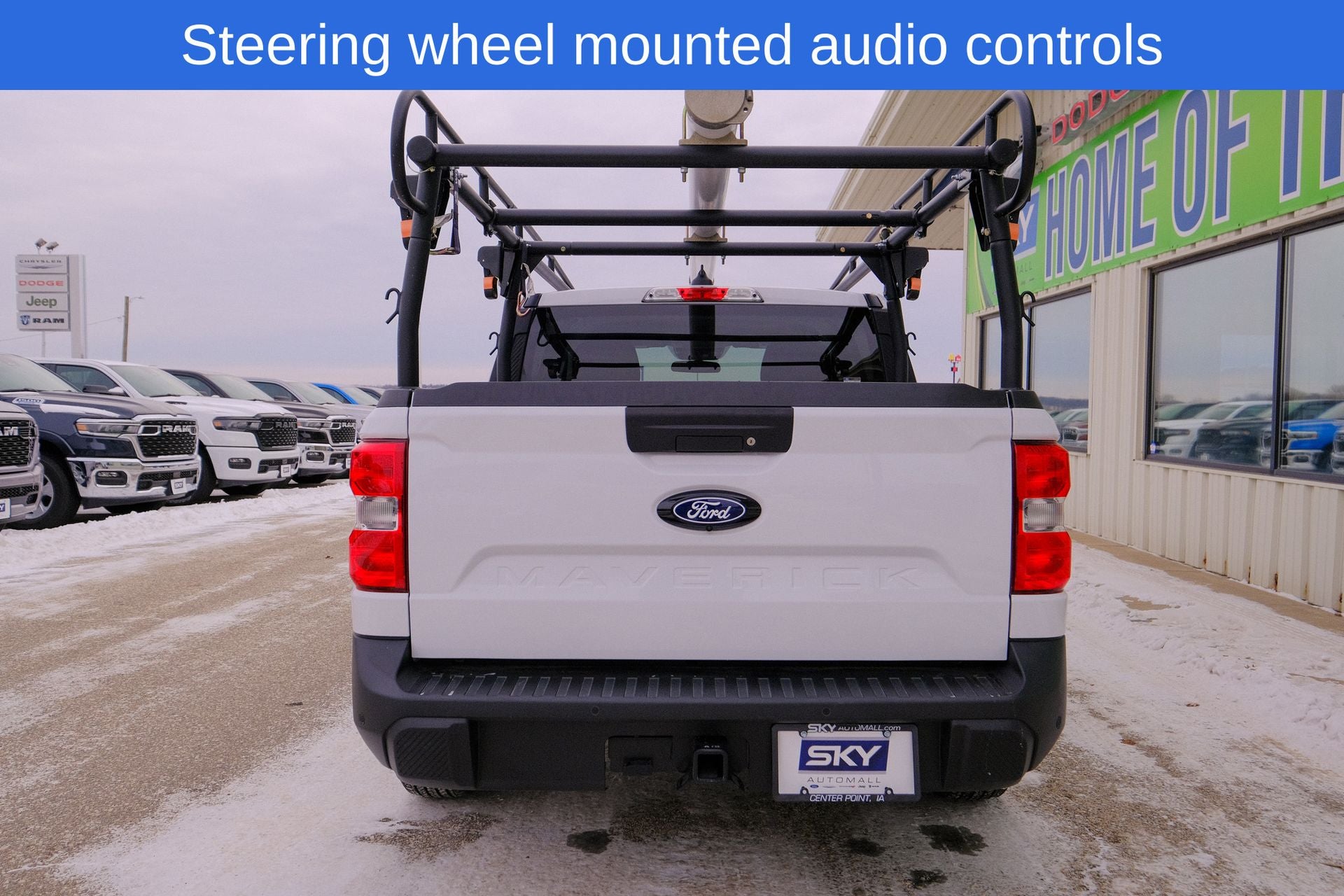 Alloy wheels, Apple CarPlay/Android Auto, Auto High Beams, BLIS w/Cross-Traffic Alert, Brake assist, Cross Traffic Brake Assist, Equipment Group 302A, Evasive Steering Assist, Exterior Parking Camera Rear, Ford Co-Pilot360 1.0, Intersection Assist, Lane-Keeping System, Power Glass Manual-Folding Mirrors, Pre-Collision Assist w/Automatic Emergency Braking, Rear Parking Sensors, Rear-View Camera, Remote keyless entry, Steering wheel mounted audio controls. Oxford White 2025 Ford Maverick XLT AWD 8-Speed Automatic EcoBoost 2.0L I4 GTDi DOHC Turbocharged VCT
