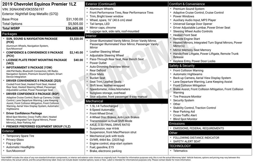 Used 2019 ChevroletEquinox Premier w/1LZ
