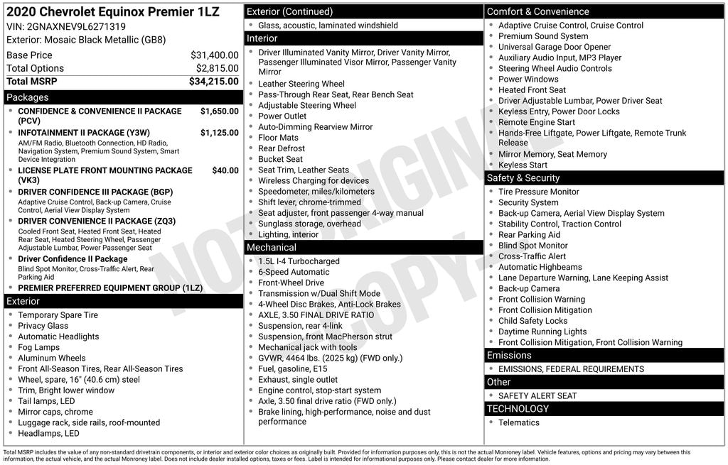 Used 2020 ChevroletEquinox Premier w/1LZ
