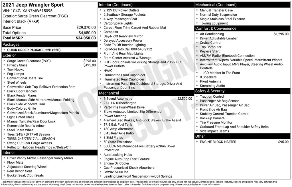 Sarge Green Clearcoat 2021 Jeep Wrangler Sport 4WD 8-Speed Automatic 2.0L I4 DOHC