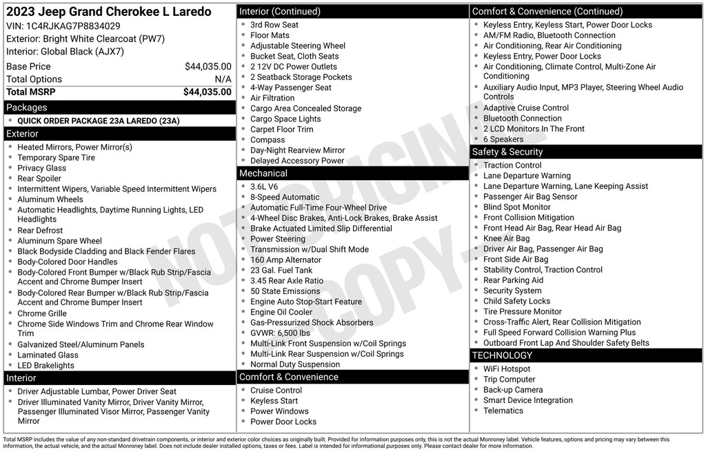 Bright White Clearcoat 2023 Jeep Grand Cherokee L Laredo 4WD 8-Speed Automatic 3.6L V6 24V VVT
