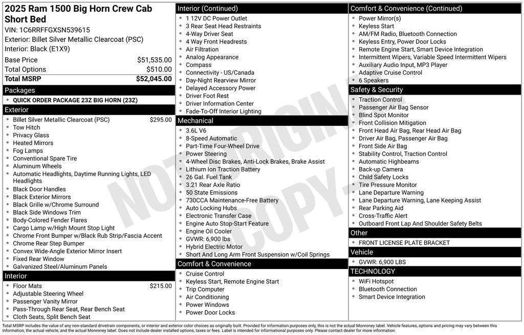 Billet Silver Metallic Clearcoat 2025 Ram 1500 Big Horn/Lone Star 4WD 8-Speed Automatic 3.6L V6 24V VVT